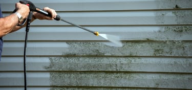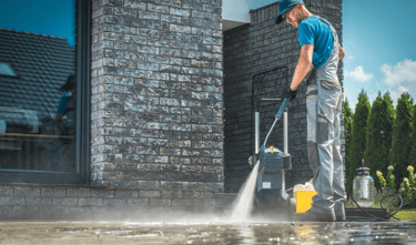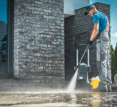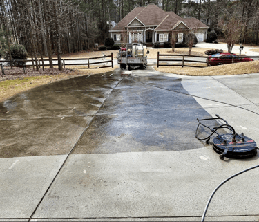 Try our pressure washing service. Porches, driveways, houses. We can wash all the poop away, or if your home just needs a bath